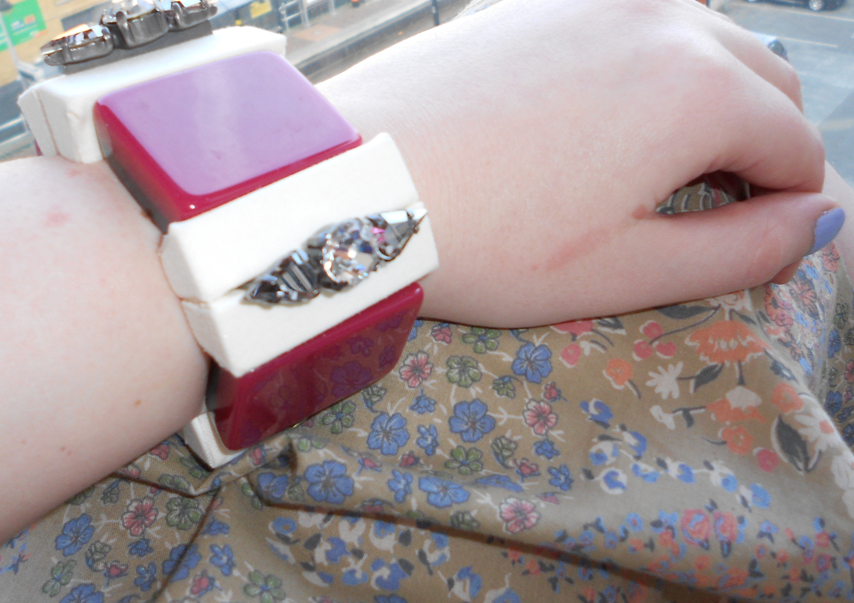 It’s weekend and it’s sunny in Manchester! In March! This is a very exciting prospect, and although I had a mid day hair appointment (see me sporting my updated look above) this didn’t stop me from putting together a sunny spring weekend look. I’m channelling a very subdued interpretation of the print clash trend with faded florals and micro-stripes, but I think it works. I’m also proudly wearing my awesome Marni for H&M chunky bracelet – I can imagine this being a permanent fixture in all my summer outfits!