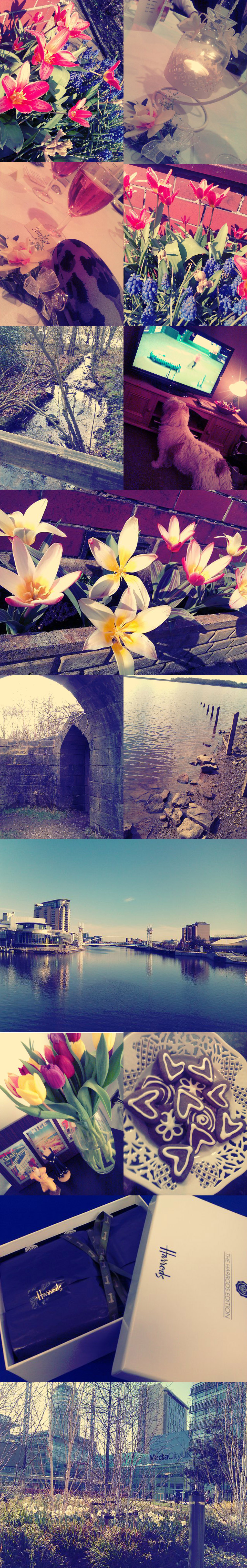 The first wonderful flowers I’ve seen (and they’re in my parents’ garden); pretty table decor from the Spring ball; more pretty flowers; country walks in Rivington; dogs love Crufts!; yet more of those gorge flowers; castle at Rivington; reservior at Rivington; glorious Salford Quays; spring tulips make this my favourite corner of our apartment; home-made gingerbread; Harrods Glossybox; the BBC at MediaCityUK (in the sun!).