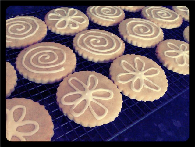 I baked these cute iced lemon biscuits for the cake stall. Went down a treat!