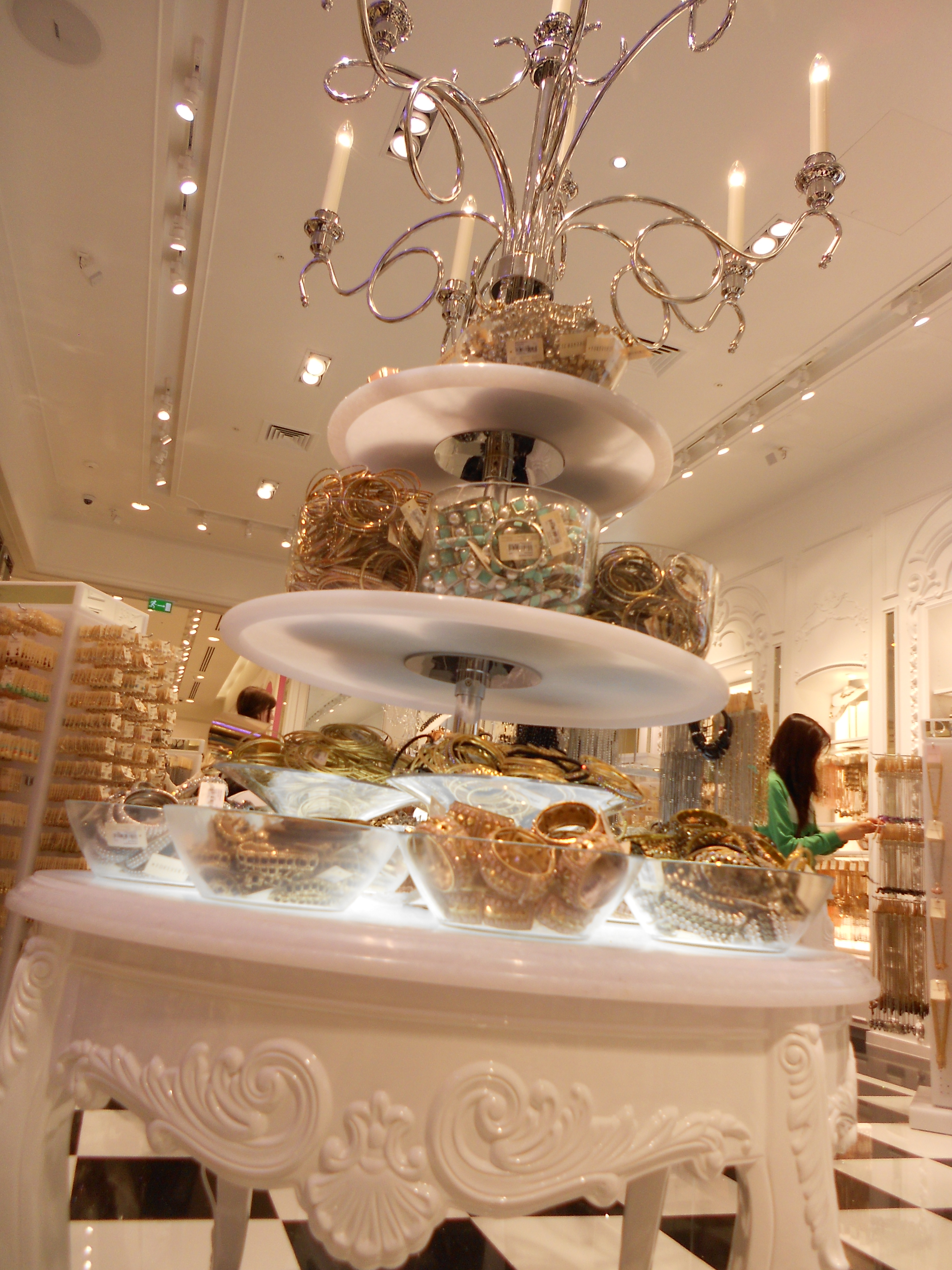The store also features a shoe boutique, a lingerie corner and an Aladdin’s cave of accessories, including twinkling jewels and many bags.