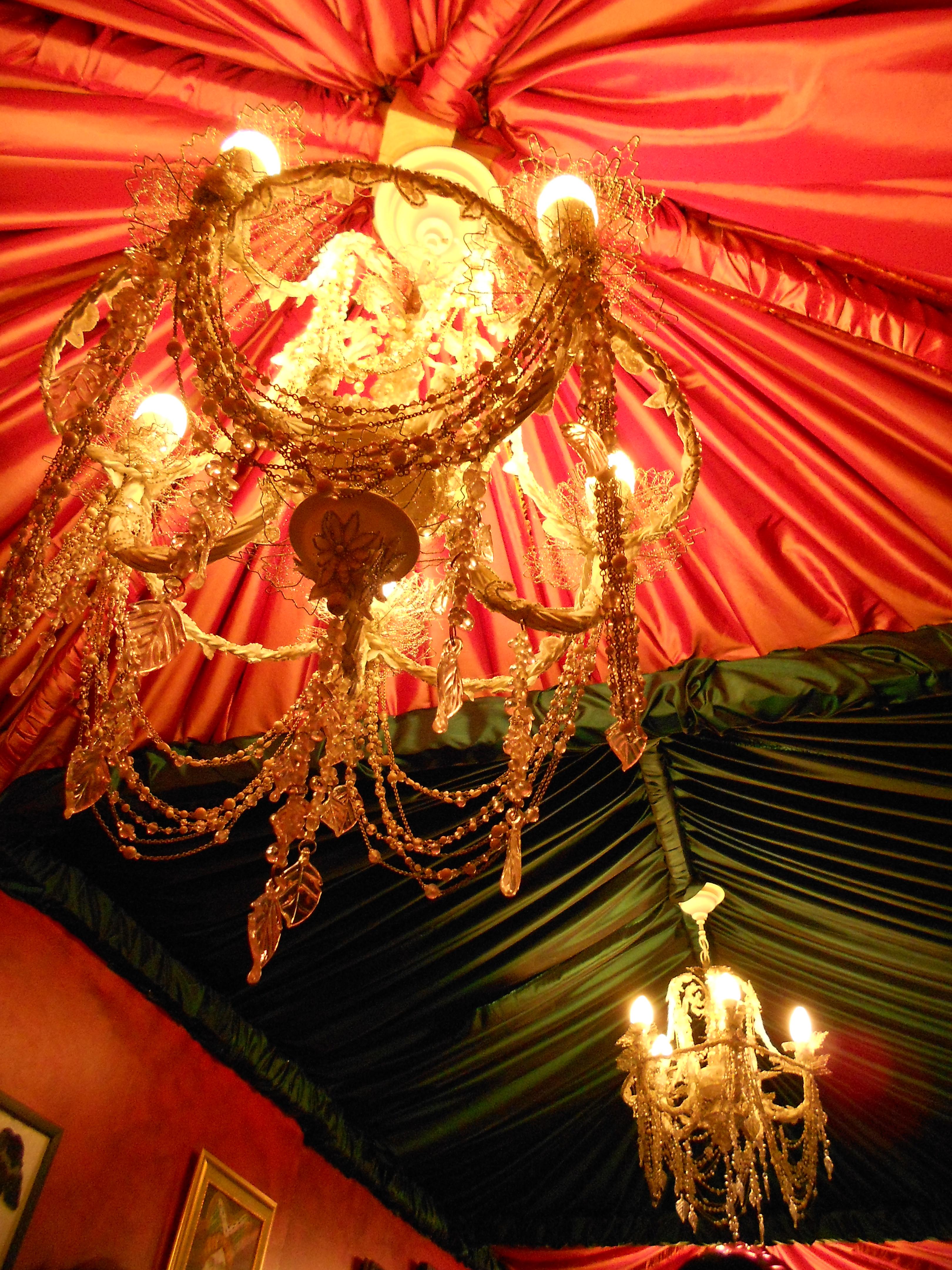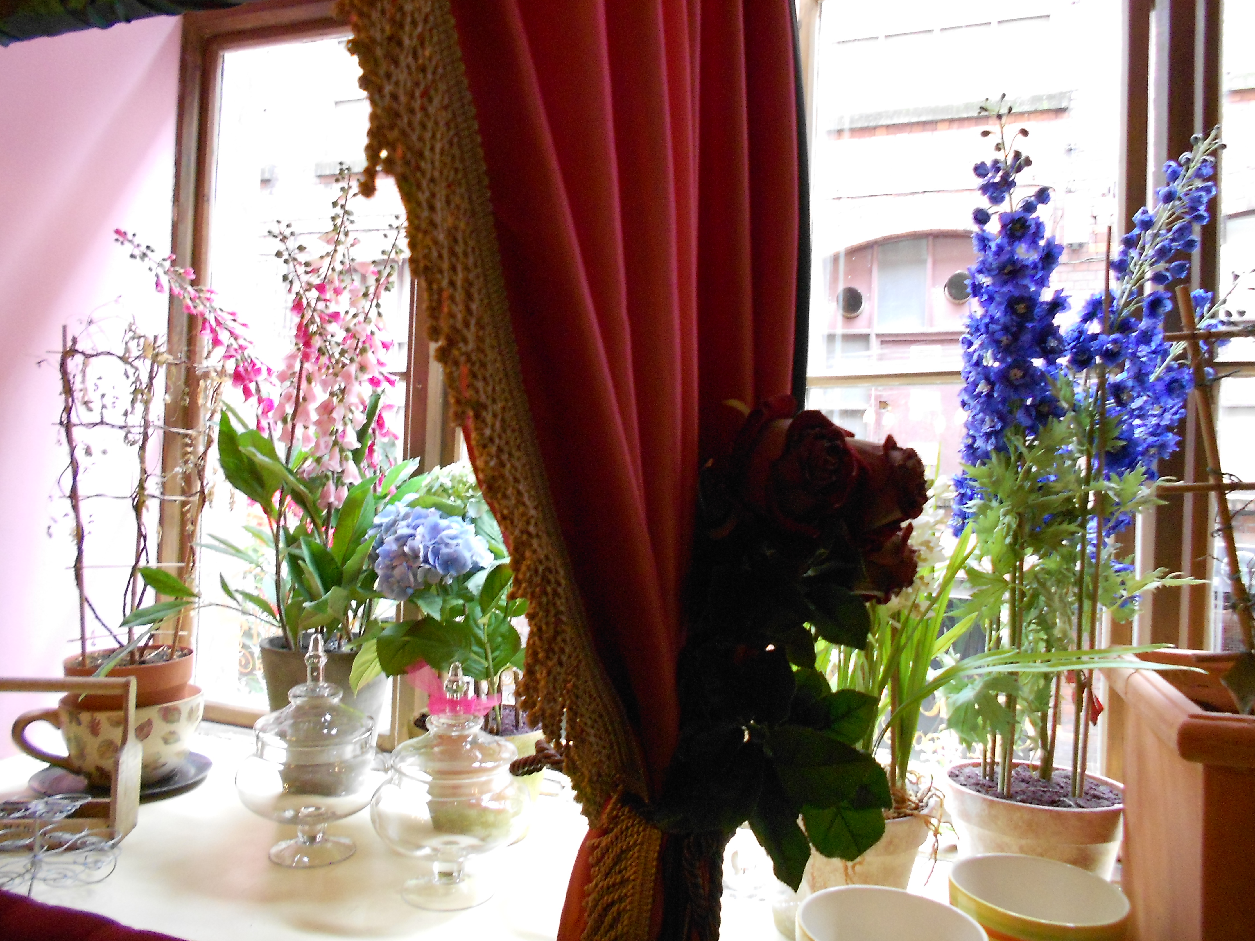 This was my first trip to the whimsical Richmond Tea Rooms in Manchester, but it was a delightful place with the most amazing (and massive) cakes! The décor is inspired by Alice in Wonderland and the Mad Hatter’s Tea Party, and as a hen party of 17 people we were lucky enough to be seated in the opulent booth/den area, complete with a plethora of cushions and chandeliers hanging from the satin canopy.