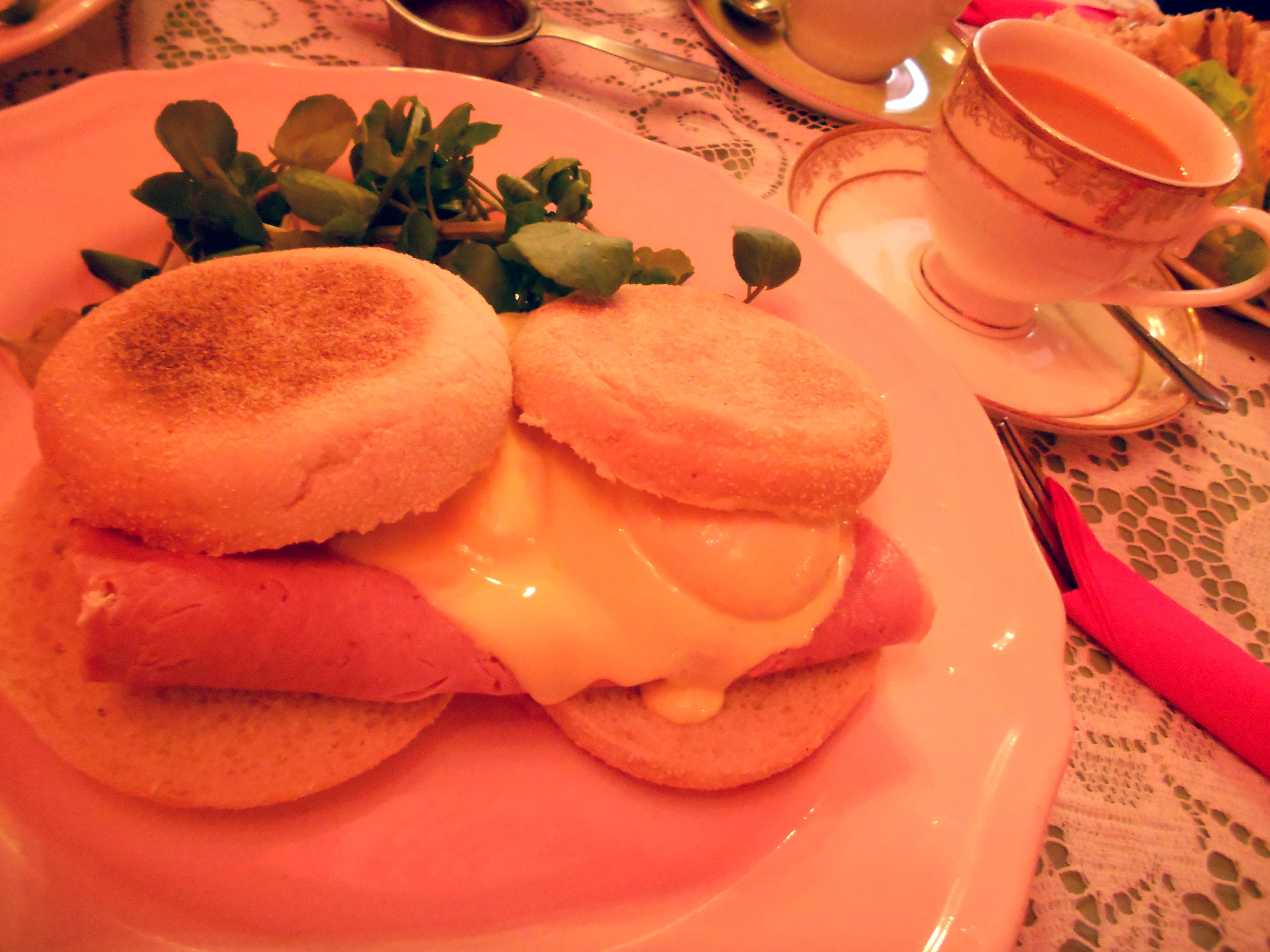 I ordered Eggs Benedict, because ordering breakfast just seems so exciting to me, and a pot of the Richmond Blend tea, and later a slice of Victoria Sponge filled with Chantilly cream and strawberries and a bottle of rose lemonade. Apart from the fact that I felt like I would burst afterwards, it was all delicious, and definitely an enjoyable girly experience. I especially loved all the mismatched china!