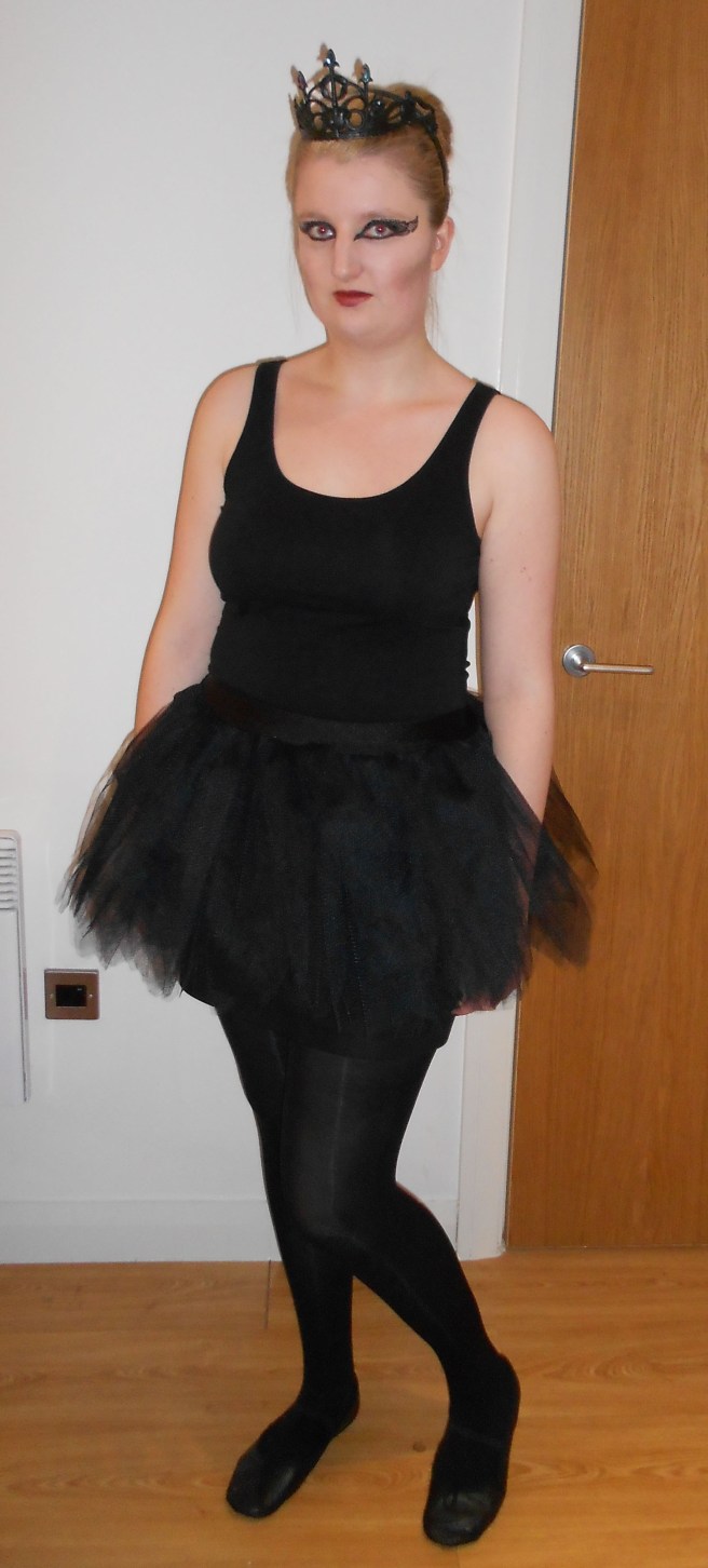 • Black tutu. Mine was a tutu skirt which I got off ebay, and there are plenty about. I coupled mine with a black vest, but if you can spare the expense you could get your hands on a full tutu dress (which is more accurate). You could also go to town on decorating your top with embellishments, as the dress in the film is adorned with feathers.