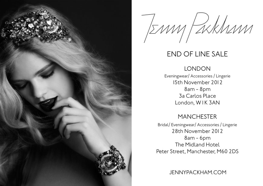 Tomorrow there is going to be a Jenny Packham End of Line Sale in Manchester at the Midland Hotel (full details below), which will include lingerie and accessories as well as Bridal and Evening Wear with dresses apparently starting from £199!!!