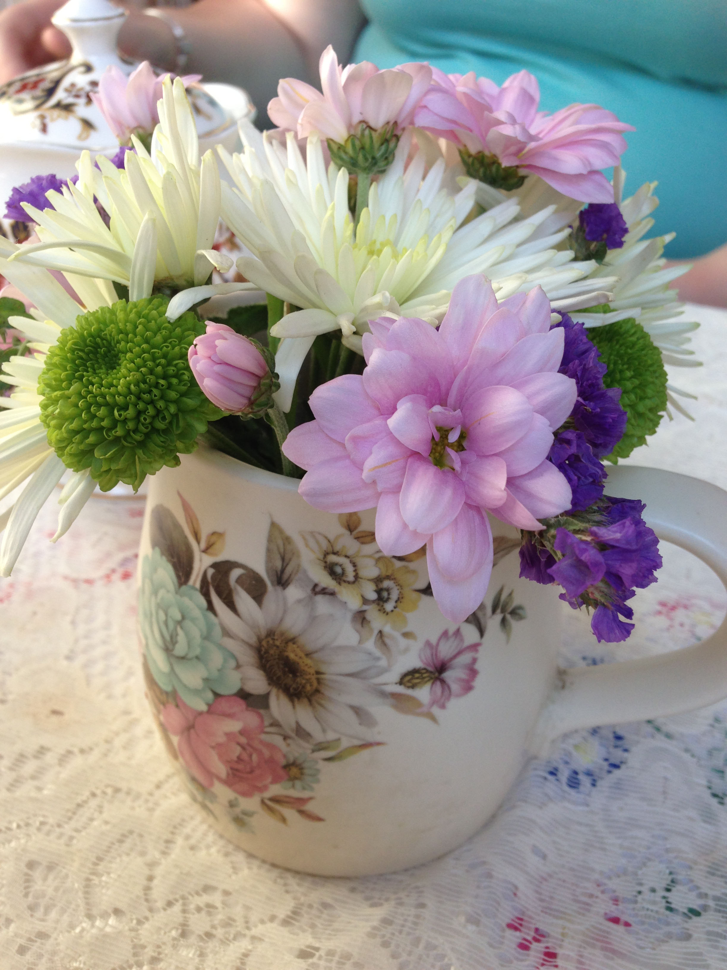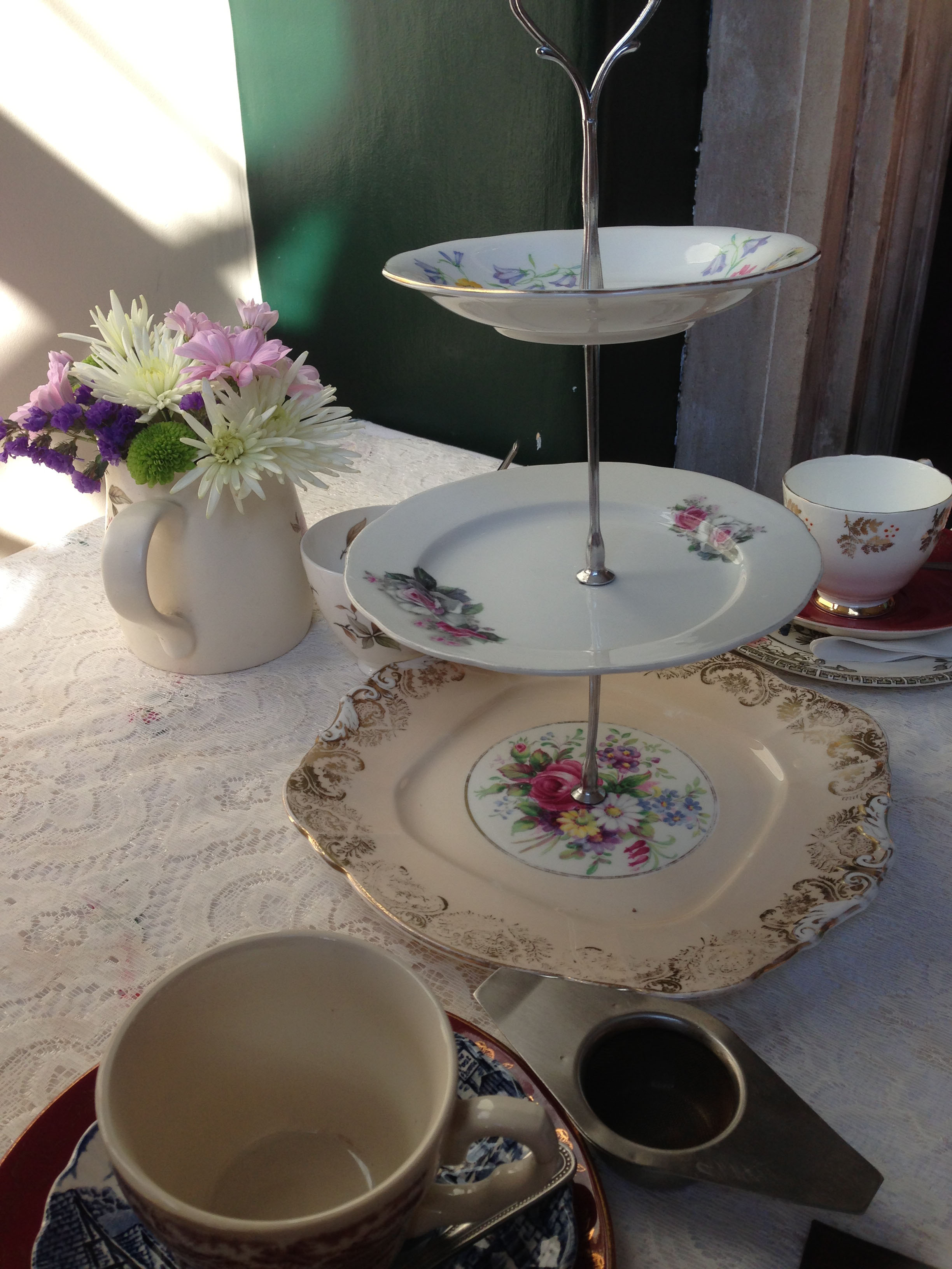 The tea room is housed upstairs in The Coach and Horses pub in Soho and is accessed through a door housed behind the bar. This means you have to request access to the Secret Tea Room by asking the bar man – use your imagination and it’s like entering an illicit speakeasy! A nice twist! Once inside it was all loveliness and refinement and was like being transported back to the forties. We were greeted by staff dressed in vintage styling with forties jazz and wartime tunes playing from a record player in the corner of the room, and we sat at a table by the window, surrounded by lace curtains and tablecloths, cute flowers and teacups.