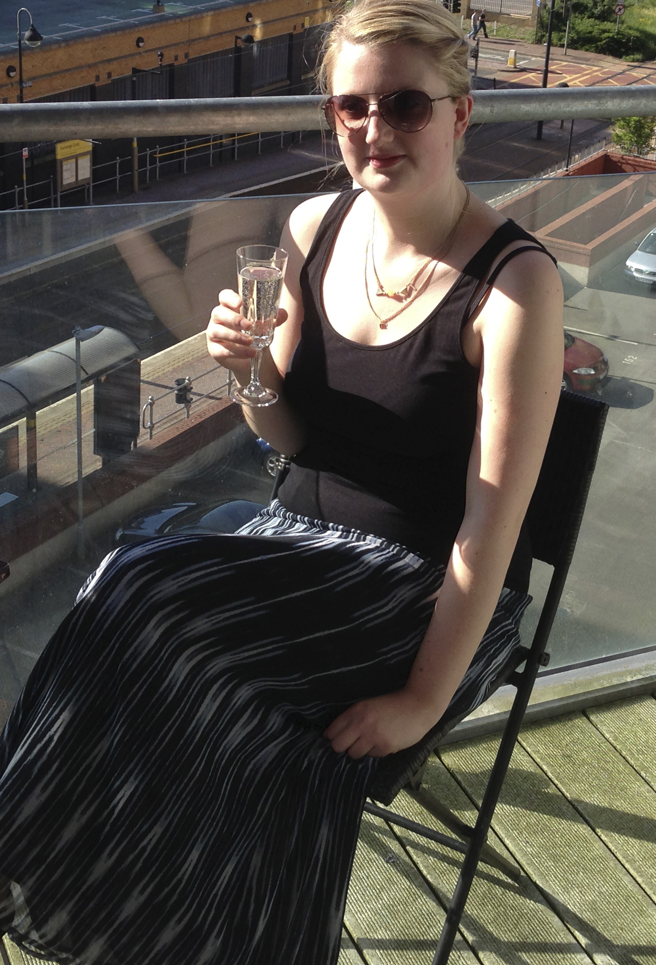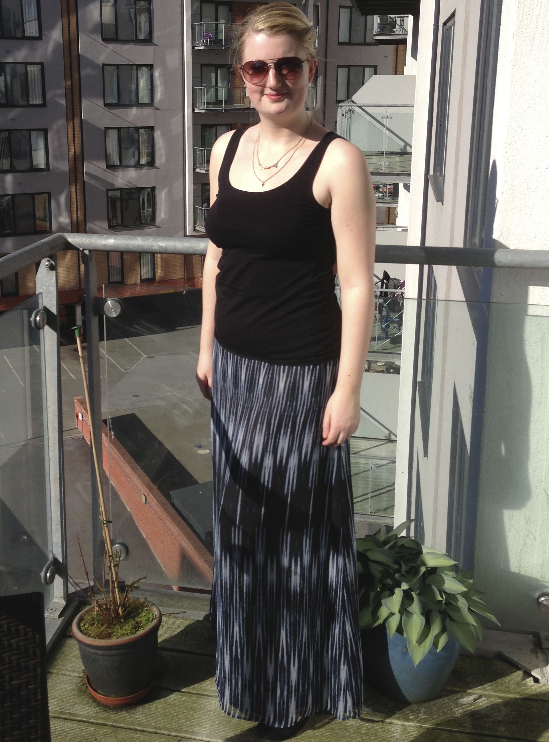 Maxi skirt from Forever 21; vest top from H&M; necklaces from Debenhams; aviator sunglasses from Fossil