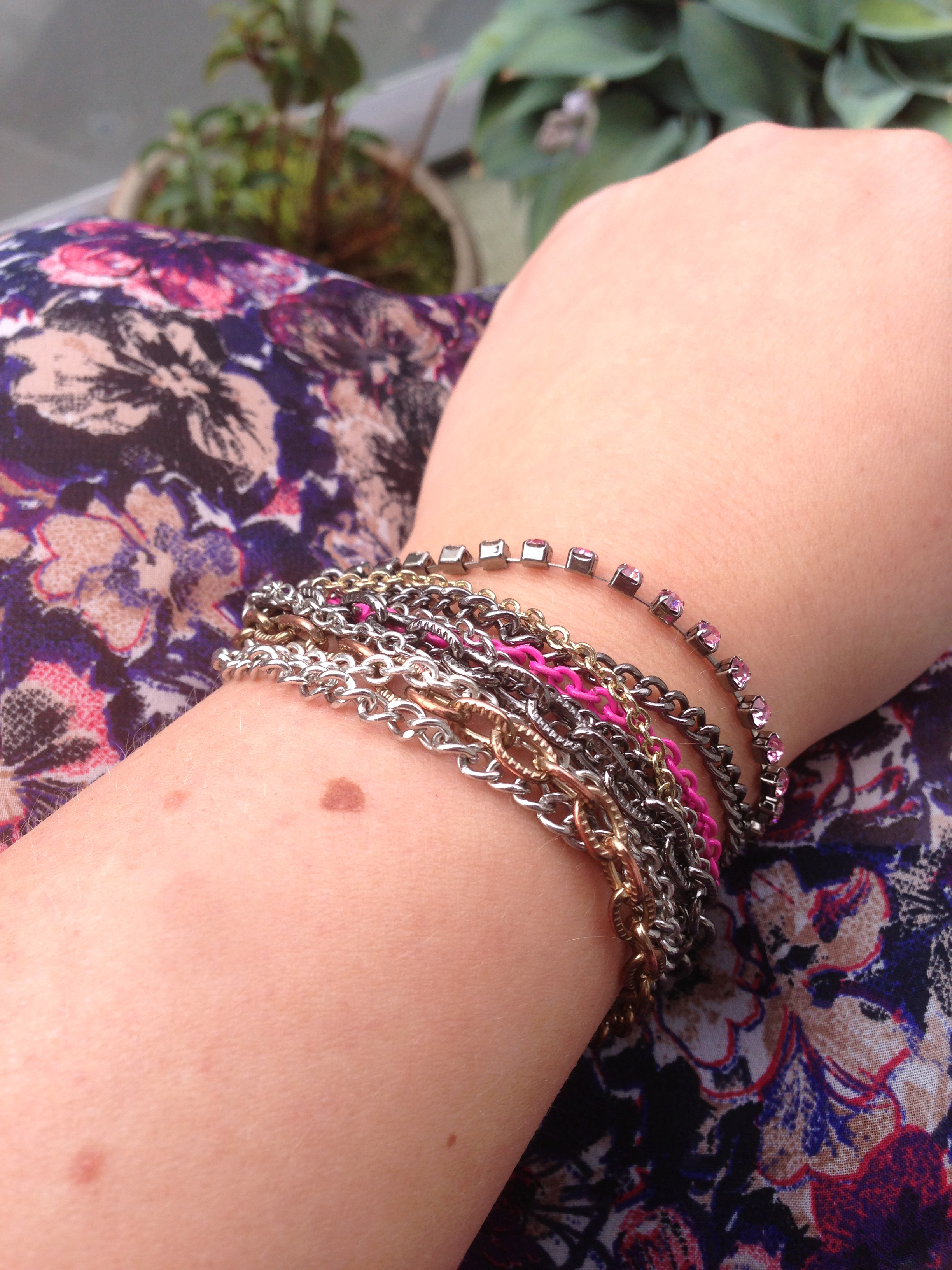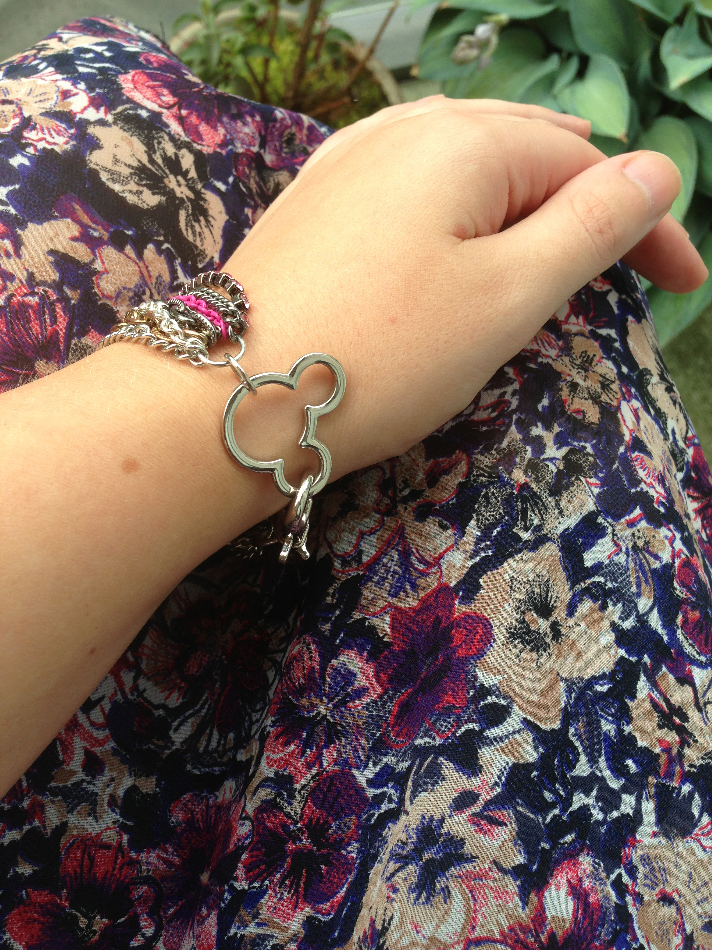 Anyway, with the hot weather and without knowing whether the cinema would go overboard with the air con (they didn’t) this was my outfit choice. A cute, casual, heart motif top from Ribbon at BANK, which has very thin fabric so is very cool, and my floaty, floral, dipped hem skirt from Tesco. I kept accessories minimal and just wore my multi-chain bracelet from Disneyland Paris, which I still love and don’t wear nearly enough!