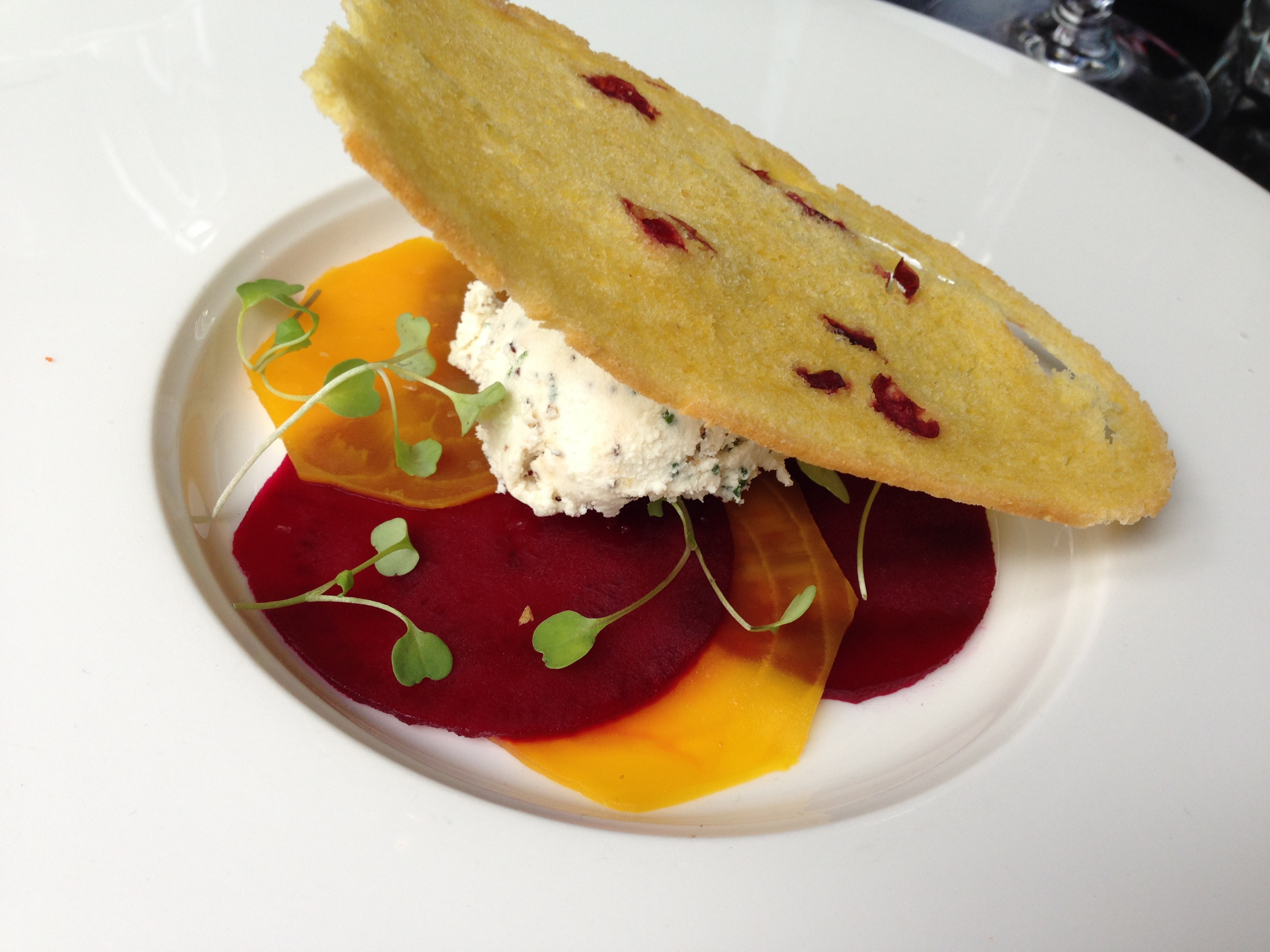 The set price lunch menu is £10 for 2 courses or £14.50 for 3 courses, and apparently they are updated regularly with new seasonal options. Sometimes set menus don’t have a particularly great selection of options, but I thought there was plenty to choose from on Room’s menu. We both went for a starter of beetroot Carpaccio with lemon and pepper goats cheese & toast. This was pretty and light, although I suppose quite small, but the goats cheese in particular was amazing! Then I had a rump steak (cooked to perfection) with rocket and shallot salad (keeping it light by opting out of an additional side of chips), while my sister went for a butternut squash risotto, which she said was very tasty!