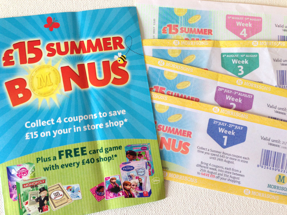 4. I also benefited from the summer bonus scheme at Morrisons, where by spending £40+ on my weekly shop for four weeks (which was natural for me, I didn’t have to spend any extra) I got £15 off my shopping this week! Plus I also got a free card game out of it too!
