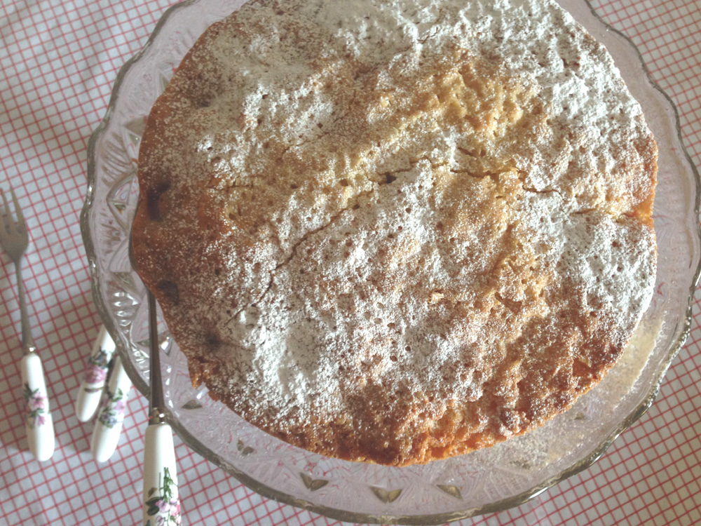 - Leave the cakes to cool completely and the ganache to thicken, and then build the cake with the ganache between the two layers. Dust the top with icing sugar.