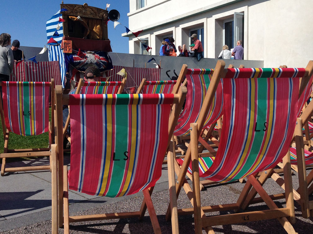 We really enjoyed the festival in the sunshine. The whole of the area surrounding the Midland Hotel and the Promenade was filled with entertainers, street theatre performers, a cockney sing-along, live music, swing dance workshops and a traditional Punch and Judy show. Because we went down on Sunday we missed out on the WW11 RAF flypast on the Saturday, but we had a giggle at the fun dog show – “Pooch Parade”. Basically there was loads going on for all the family, and it was nice to see a lot of the visitors getting into the vintage spirit with their fashion choices too. Some went the whole hog and were decked out in full forties and fifties outfits. I just gave a little nod to the theme with my hairstyle, as did our doggy with her vintage ribbons.
