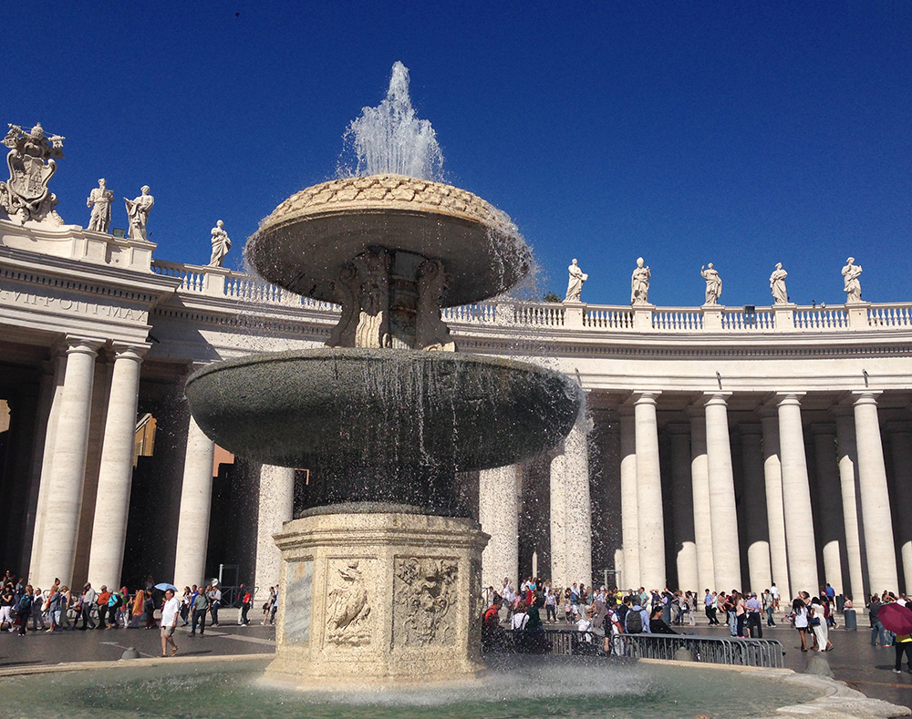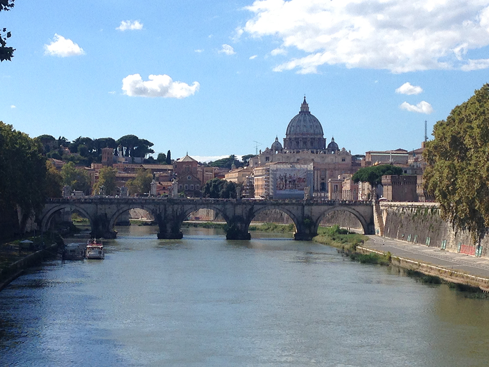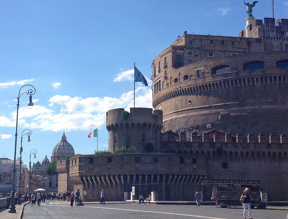 Then we took a stroll through the streets of Rome heading back along the river to our pick-up point. Crossing over to the north/west side of the river we discovered a cute riverside market and also Castel Sant’Angelo, which was quite impressive! We enjoyed sitting in its quiet leafygrounds listening to a violinist playing “Beauty and the Beast” (how romantic) before finally heading back to meet our coach near St Peter’s Square.