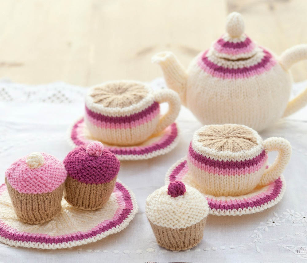 Kids will love playing afternoon tea with this cute little tea set! The pattern includes a teapot, cups, saucers, plates and cupcakes. Each piece is knitted flat, and it’s great that you can make as many items as you like! I even added some extra cake designs to mine for variety.