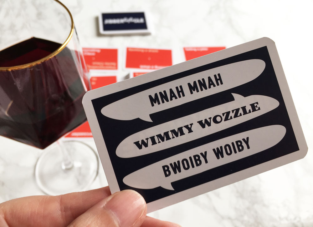 In a nutshell, the aim of the game is to guess which scenarios are being “acted out” by another player using nothing but specified nonsense words and facial expressions. Sounds theatrical and silly? Two big ticks from me!