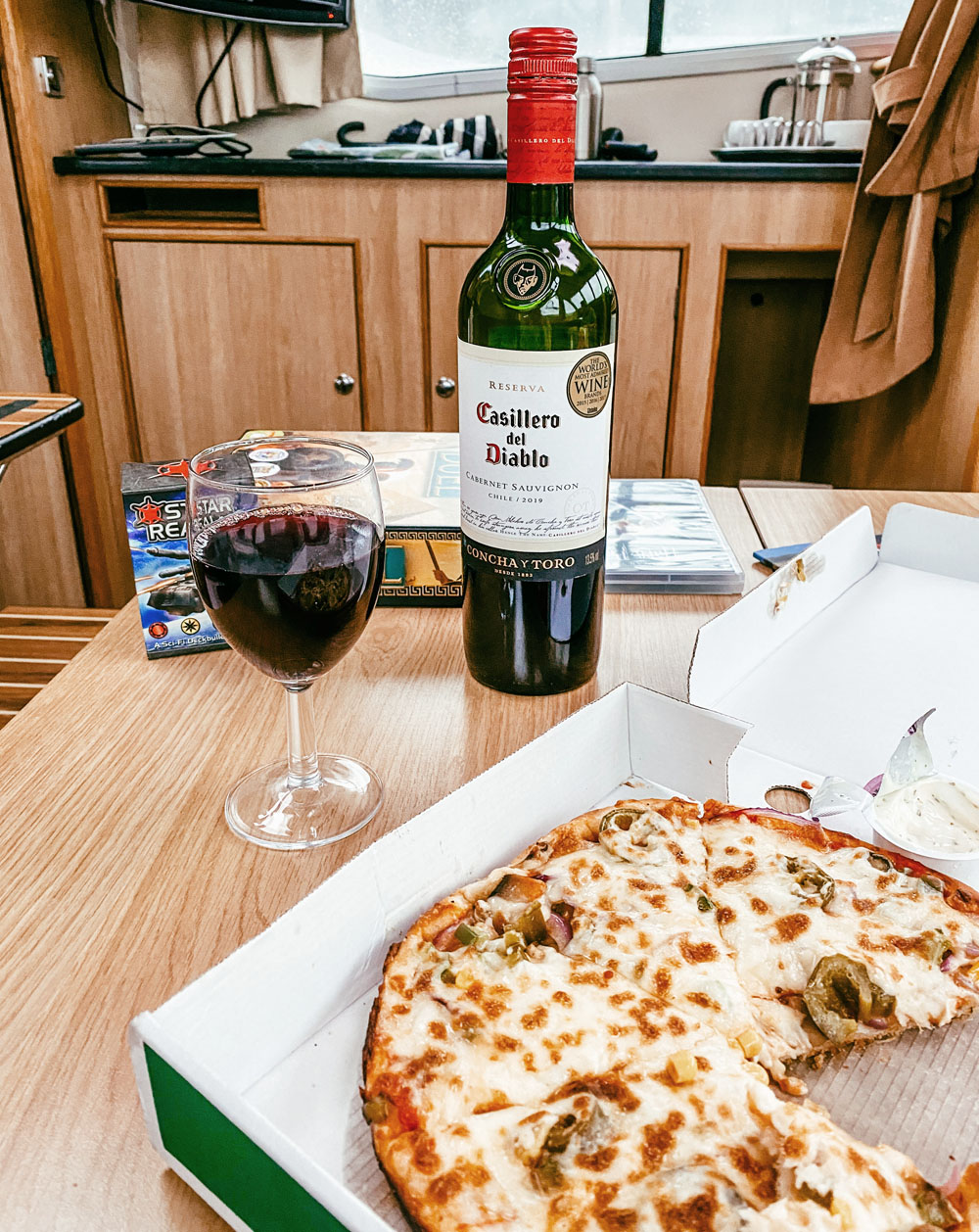 Something to be aware of is that although a boat may claim to be a certain berth, you may not comfortable if you fill it to maximum capacity. Our cruiser apparently slept 7, but there were only 2 bedrooms and one of those was pretty snug. We felt like this size boat was great for the 2 of us, and if we’d had 2 kids they would have been fine on there with us. Any more than that and we would have been extremely cramped. I have no idea how we’d all have eaten dinner together or watched TV or played a game in the evening. So be realistic about how much space you need and don’t assume a boat for 2 is really enough for 2!