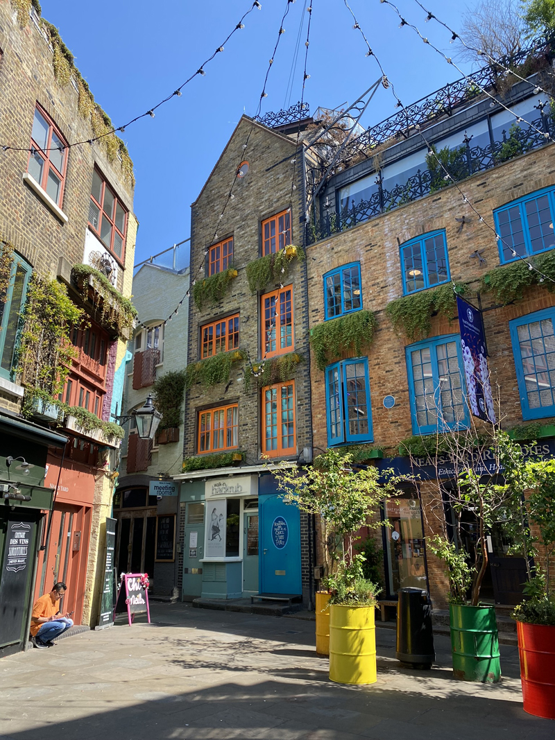 We started our day with a light breakfast at Gail’s Bakery next door to our hotel, and then we set out walking in the direction of Covent Garden. On our way we passed the busy shopping street Tottenham Court Road, and an interesting art installation at The Outnet; the colourful courtyard Neal’s Yard; and the quirky cobbled streets and backstreets of Seven Dials full of cafes, salons and cute shops.