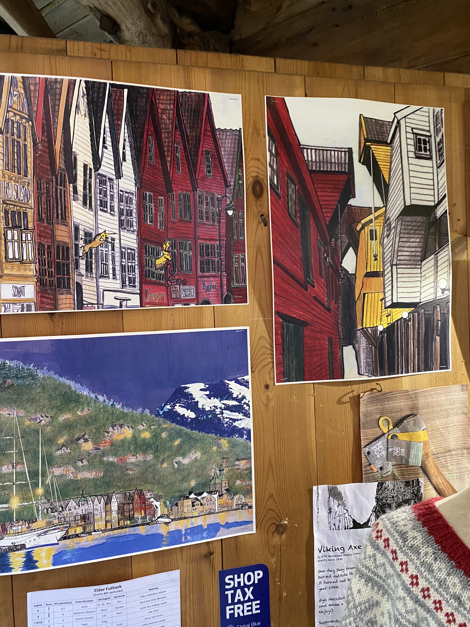 • Bryggen Hanseatic Wharf is a UNESCO heritage site, and a very unique place to explore. This historical fishing/trade site is made up of the red, yellow and green painted wooden buildings you’ll see on many images of Bergen. These days they house an interesting range of gift shops, indie shops and art galleries and it was a lovely place to wander around and enjoy some shopping.