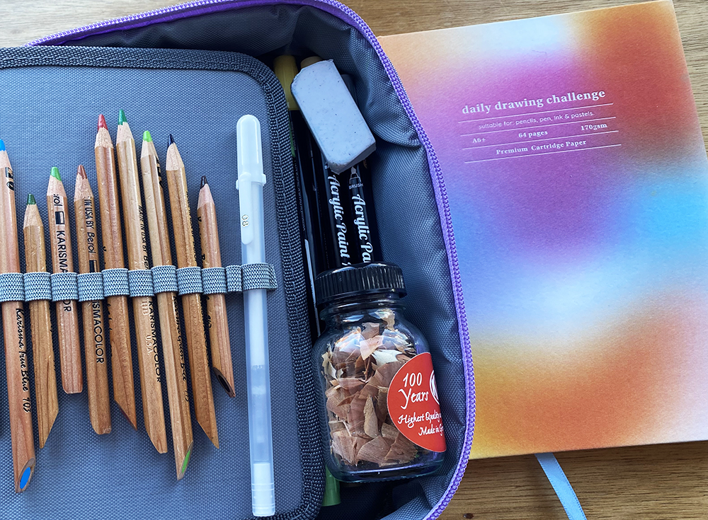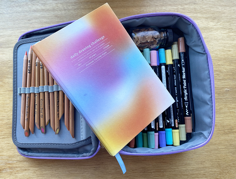 - Handy Travel Sized Case. My cute lilac pencil case is the perfect size for all my markers, a selection of coloured pencils, and it also fits my sketchbook inside! You can by this pencil case here.