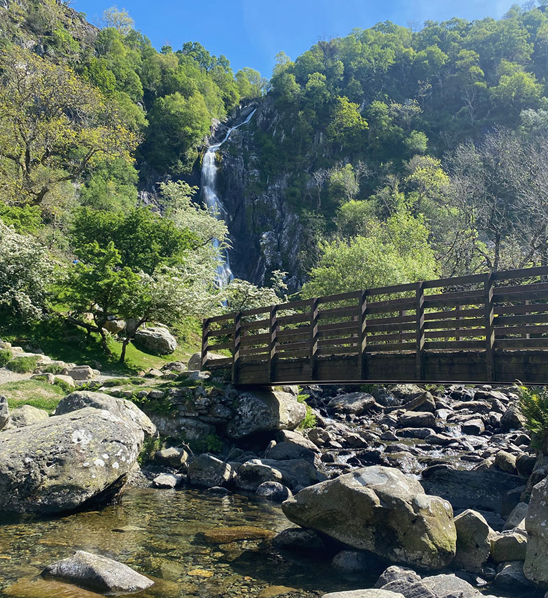 Snowdonia (Eryri) National Park has lots of beautiful walks and scenery to enjoy with your dog. We particularly enjoyed our visit to the stunning Aber Falls waterfall, which was one of our holiday highlights! There are 2 small car parks for the Aber Falls walk, and as we visited midweek we had no trouble finding a spot in one of them. It costs £5 to park for the day, and it took us about an hour to walk from there to the falls through some attractive scenery, and an hour back.
