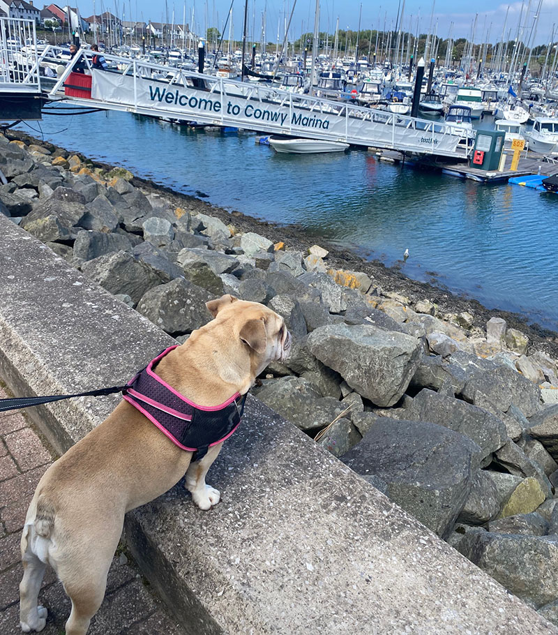 We have officially been dog owners since we adopted our sweet English Bulldog, Nellie, in December, and we just recently returned from our first week-long holiday with her! As I am now qualified to talk about dog-friendly holidays, I thought I’d share the details of this lovely week away in Conwy, North Wales. We were extremely lucky with the weather, which was sunny and warm but never too hot to do anything with little Nellie. And she loved every minute of her first family holiday!
