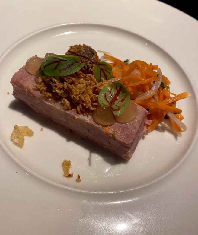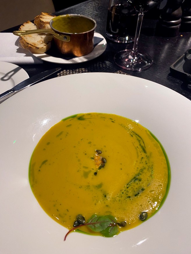On my latest visit I chose their Squash Soup as a starter, which was a little bit special due to the theatrical way this was poured into the bowl at the table, over the garnish of confit garlic, shallot and pumpkin seeds. It tasted incredible! Craig opted for the Ham Hock Terrine which he reported was also delicious.