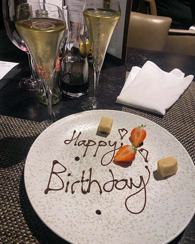 We’ve tried their delicious desserts too, but on our latest visit we were far too full. Yet because it was Craig’s birthday, they didn’t let us leave without a little sweet treat to mark the occasion, which was a lovely touch. (I can definitely recommend the Apple Crumble and the Sticky Toffee Pudding though!)